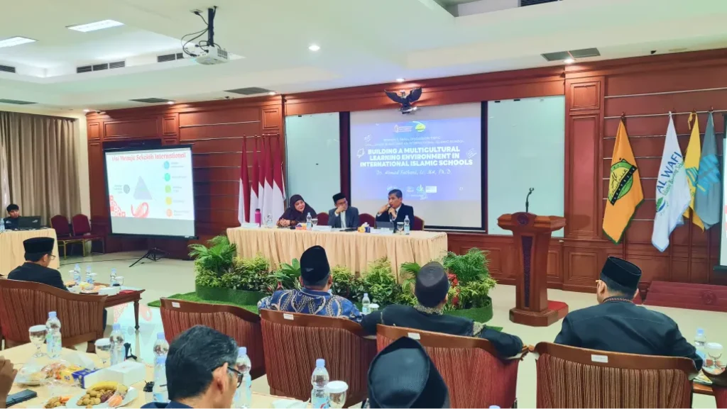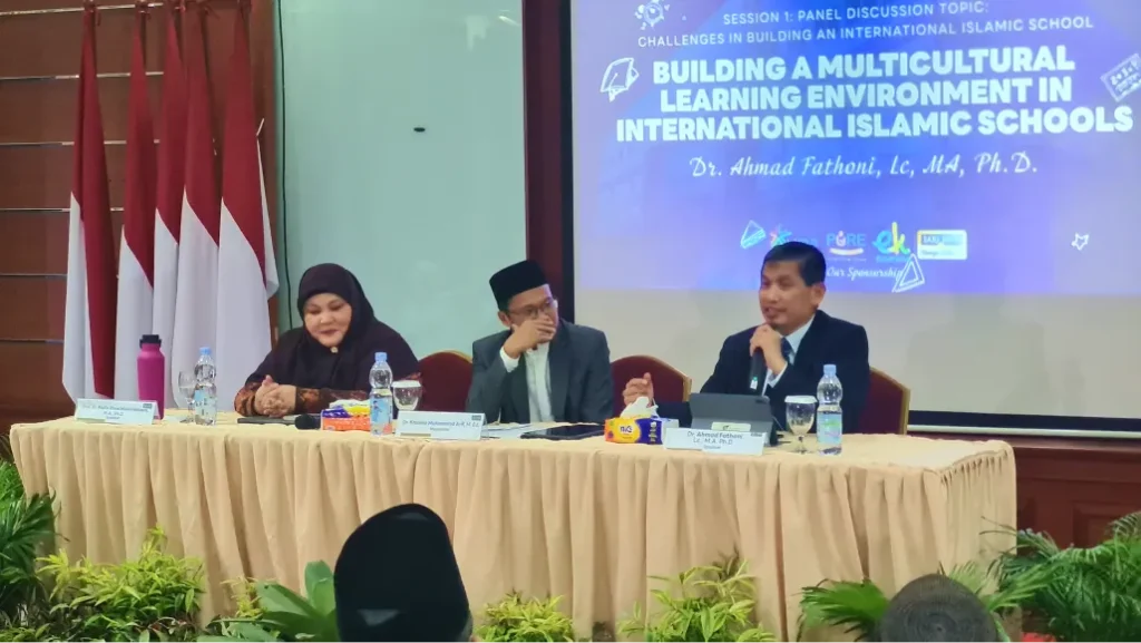 Pada sesi pertama, Prof. Dr. Maila Dinia Husni Rahiem, M.A., Ph.D., memaparkan pentingnya pendidikan karakter dalam sekolah Islam internasional. Beliau menekankan bahwa pendidikan karakter adalah kunci untuk membentuk generasi unggul yang siap menghadapi tantangan global. Sementara itu, Dr. Ahmad Fathoni, Lc., M.A., Ph.D., menjelaskan bagaimana menciptakan lingkungan belajar multikultural dapat memperluas wawasan global siswa sekaligus memperkuat pemahaman Islam yang inklusif.