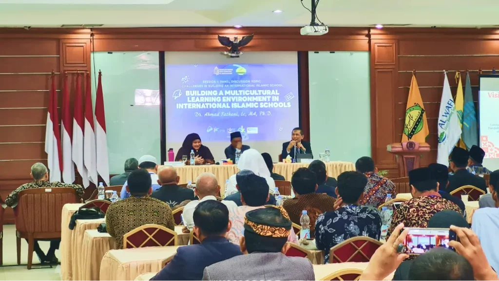 Sesi diskusi dipandu oleh moderator Dr. Khairan Muhammad Arif, M.Ed., dengan Keynote Speech dari Any Sayekti, S.H., M.A., yang membahas pentingnya regulasi dan tata kelola untuk mendukung pengembangan sekolah Islam internasional. Materi ini menjadi fondasi awal bagi diskusi lebih mendalam tentang peluang, tantangan, dan strategi implementasi pendidikan Islam berbasis global.